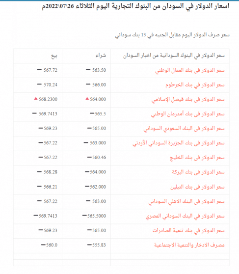 ونقلت مصادر إعلامية سودانية عن متعاملين قولهم إن أسعار الدولار سجلت استقرار قياسيا منذ ايام في الاسواق الموازية حيث بلغ سعر الدولار 567 جنيها وبلغ سعر بيعه 572 جنيها.