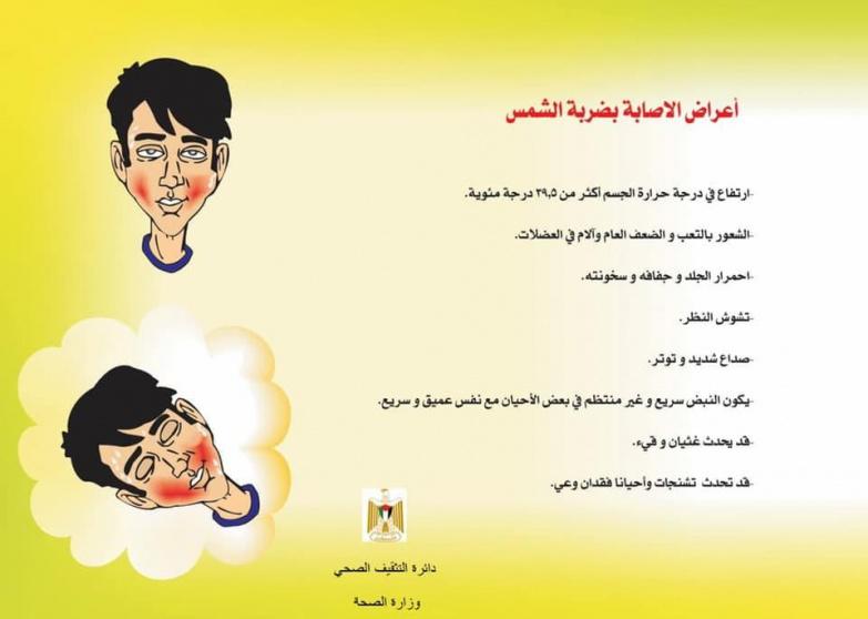وطالبت الصحة من المواطنين وتحديداً كبار السن والأشخاص الذين يعانون من أمراض مزمنة توخي الحذر والامتناع قدر الإمكان عن التعرض لأشعة الشمس المباشرة.