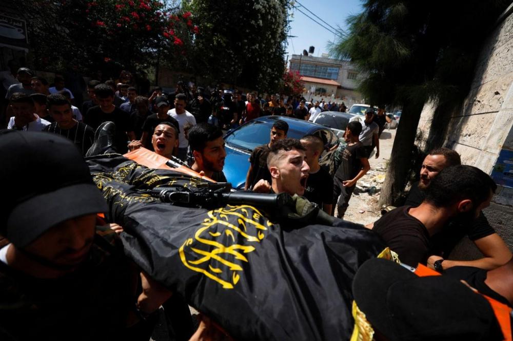 وانطلقت مسيرة جماهيرية في شوارع مدينة ومخيم جنين، يتقدمها مقاومون من كتيبة جنين التابعة لسرايا القدس، والذين أطلقوا النار بالهواء تحية للشهداء ورسالة تهديد للاحتلال بتصعيد المقاومة.
