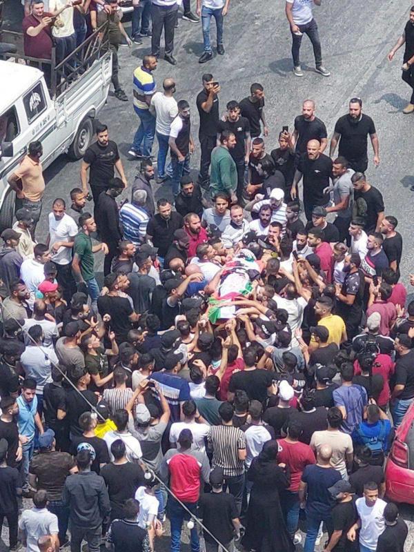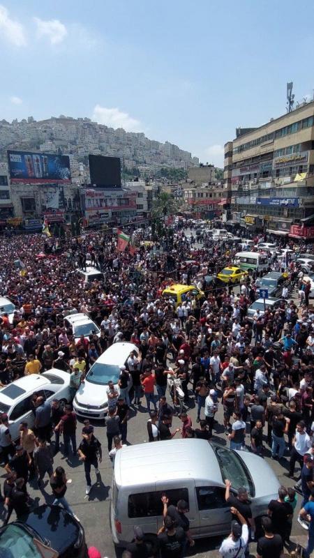 وانطلق موكب التشييع من أمام مستشفى رفيديا وسط غضب عارم وهتافات وطنية واضراب وحداد شل مرافق الحياة في مختلف محافظات الوطن، بالتزامن مع اشتباكات ومواجهات اندلعت مع قوات الاحتلال على خطوط التماس.