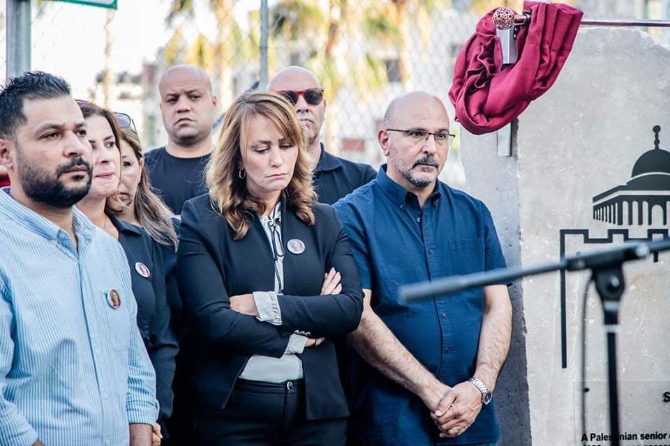 كما تم أيضًا تدشين جدارية تحمل رسمًا للراحلة ونبذة عنها، وسط رسوم لمصلى قبة الصخرة وكنيسة القيامة وأسوار مدينة القدس المحتلة.