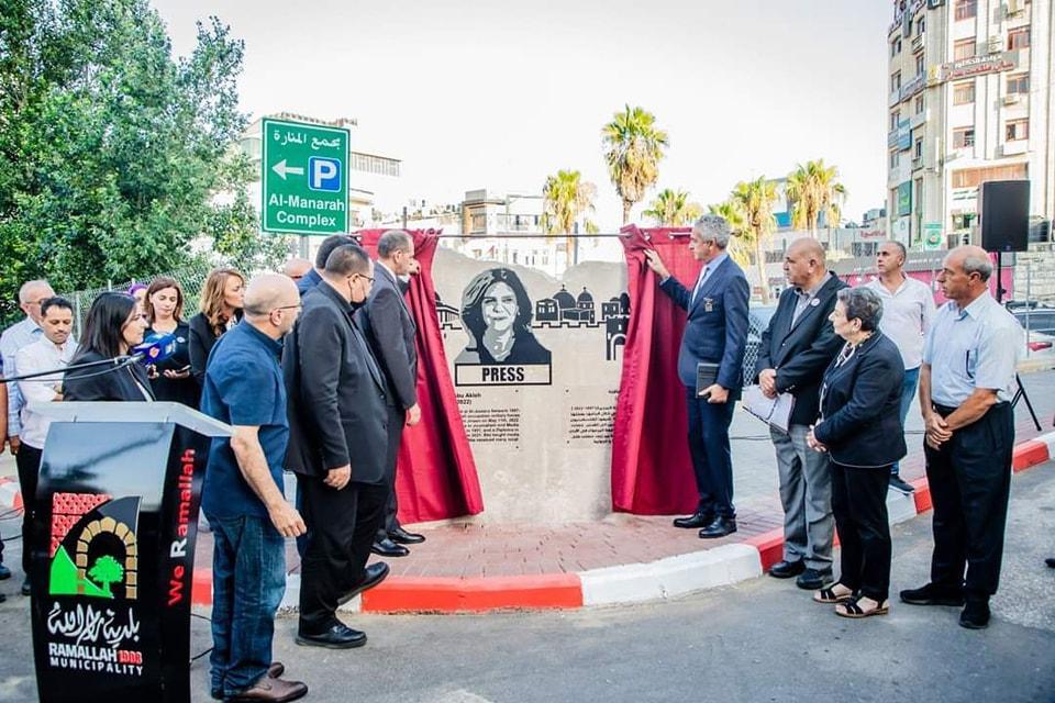 دشنت بلدية رام الله عصر اليوم الأربعاء، شارعا يحمل اسم الراحلة شيرين أبو عاقلة مقابل مبنى قناة الجزيرة وسط مدينة رام الله.