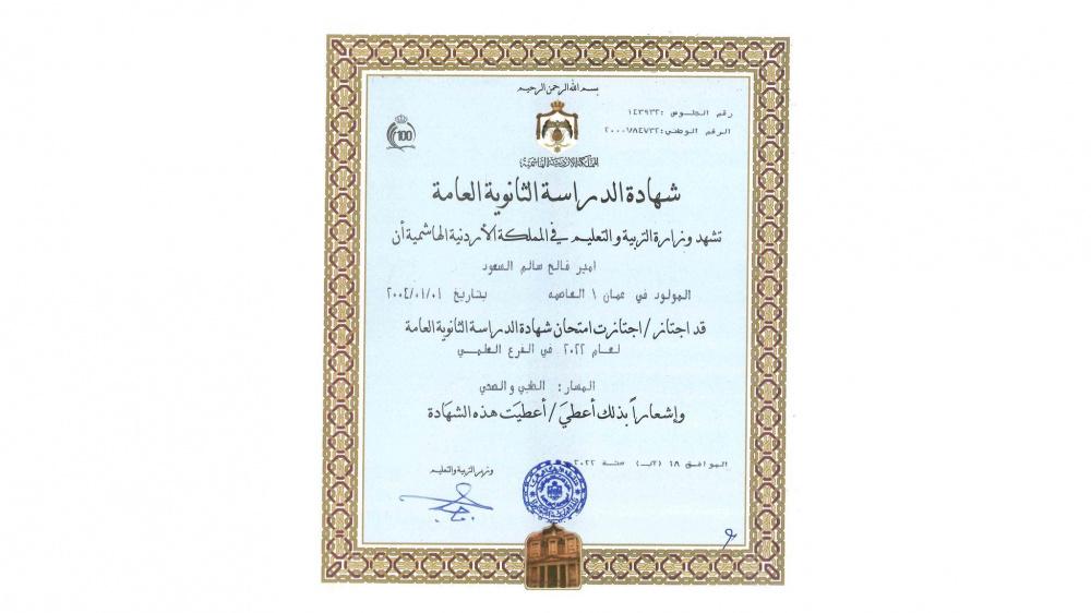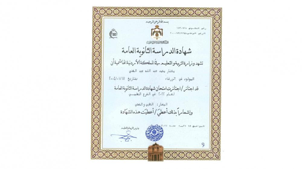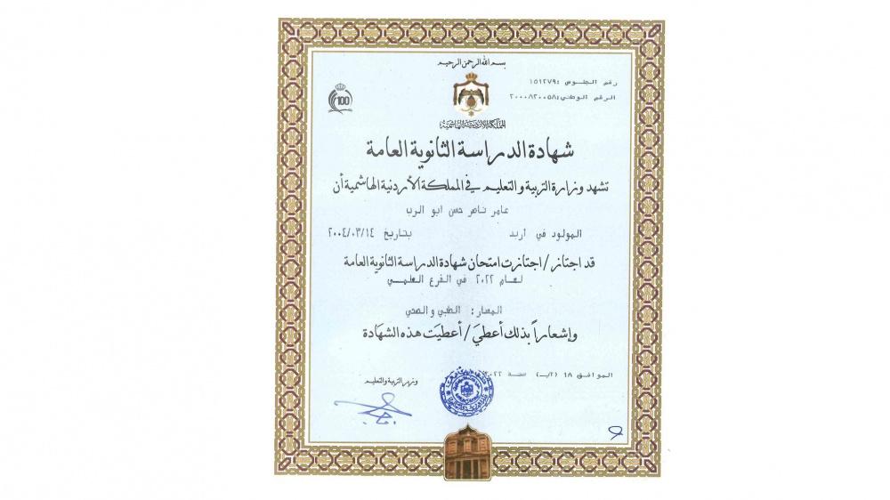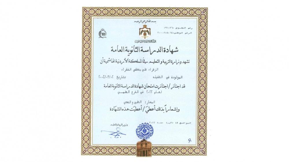 أسماء أوائل الثانوية العامة التوجيهي 2022 في الأردن