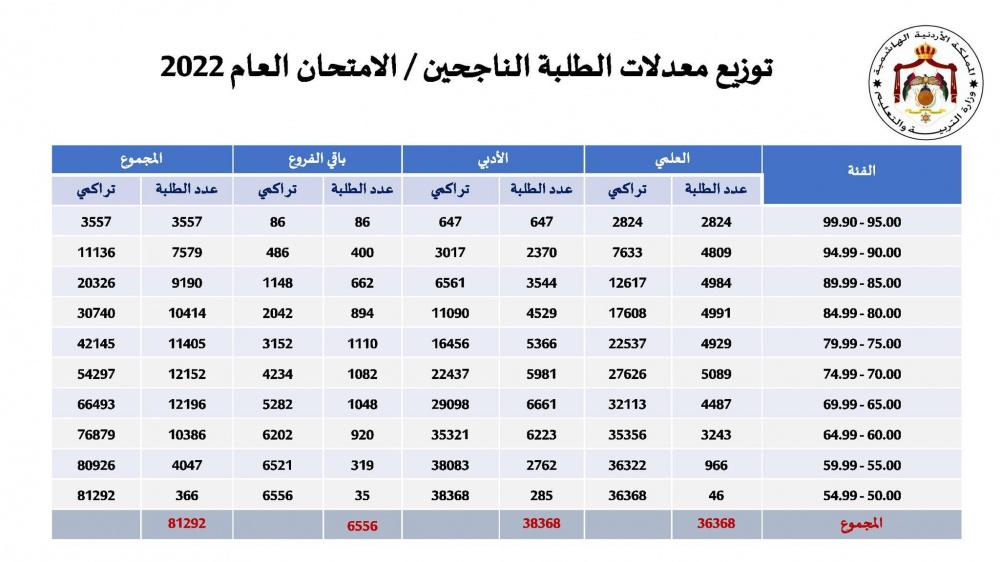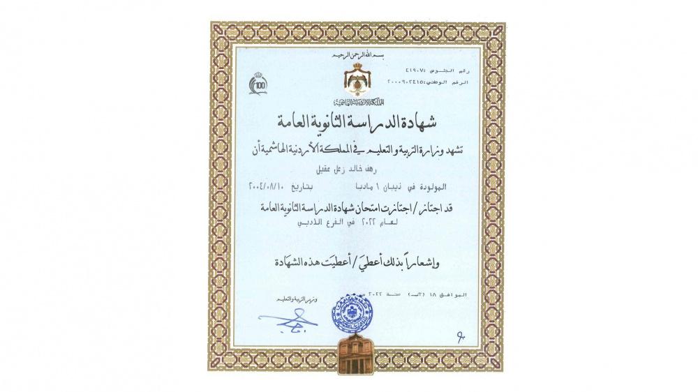 أوائل الثانوية العامة التوجيهي في الأردن 2022 الفرع الأدبي: