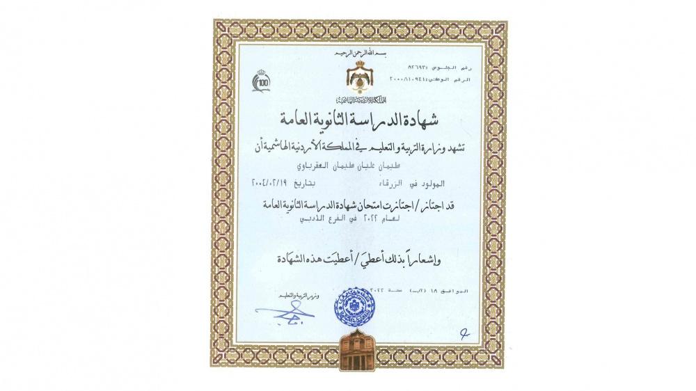 أوائل الثانوية العامة التوجيهي في الأردن 2022 الفرع الشرعي: