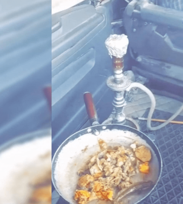 ضبط سائق يطهو الطعام ويدخن الأرجيلة داخل مركبته