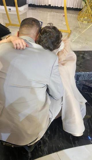 وثق هذه اللحظة المرة صديق أبيها الدكتور محمد شحادة على حسابه في فيسبوك بصورة من عرس اختها حين ارتمت على كتف أبيها.