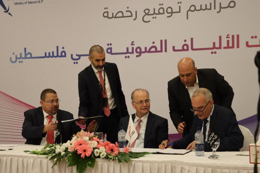 جانب من توقيع اتفاقية منح رخصة باء وتشغيل شبكات الفايبر في فلسطين