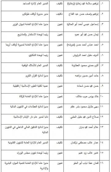 أصدر وزير الأوقاف والشؤون الدينية الشيخ حاتم البكري، عددا من القرارات الإدارية الخاصة بتنقلات الموظفين في المراكز الإدارية في الوزارة والمديريات والإدارات العامة والمؤسسات التابعة لها، وذلك ضمن سياسة واستراتيجية الوزارة في إحداث نقلة نوعية في العمل والرقي بالأداء شملت تنقلات وتكليفات داخلية .