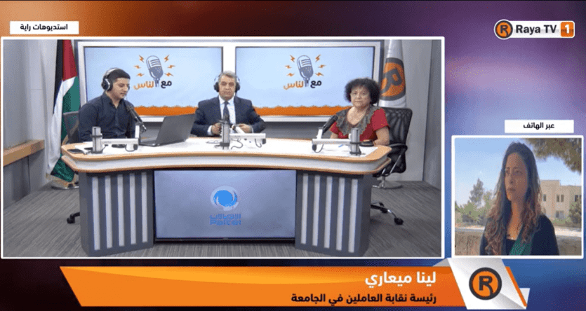 "رايـة" فتحت ملف أزمة جامعة بيرزيت، واستضافت عدد من الشخصيات المعنية، إذ تحدثت لينا ميعاري رئيس نقابة العاملين في جامعة بيرزيت، عن تسلسل الأزمة قبل الوصول للإضراب.