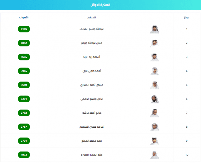 نتائج انتخابات مجلس الأمة 2022 أسماء العشرة الأوائل