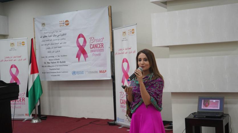 جاء ذلك خلال مؤتمر شهر التوعية بسرطان الثدي الذي عقد في رام الله، برعاية وحضور وزيرة الصحة د. مي الكيلة وبالتعاون مع صندوق الأمم المتحدة للسكان.