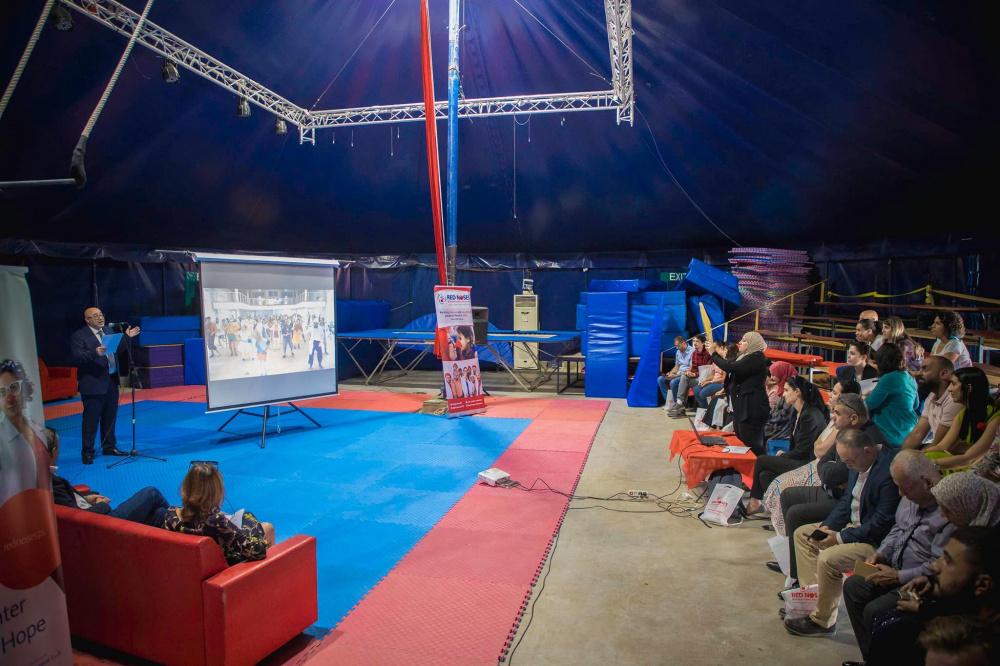 وأضاف المدير الفني للمؤسسة داوود طوطح خلال كلمته" أن المؤسسة تتميز باتباعها منهاج شامل لتطوير قدرات المهرج في الرعاية الصحية ويركز هذا المنهاج على التطوير الفني والمهارات التدريبية وعلى الموسيقى والصوت والملابس، والجانب النفسي ومحاضرات أخرى عن الأمراض وكيفية التعامل مع الفئات المستهدفة".