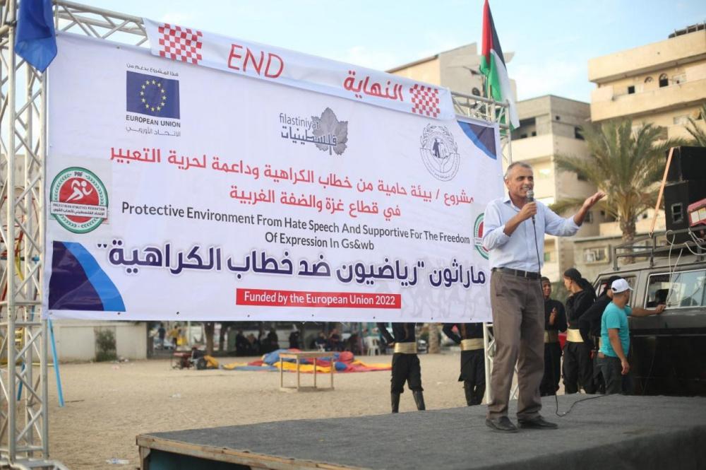 اختتم المركز الفلسطيني للديمقراطية وحل النزاعات ماراثون" رياضيون ضد خطاب الكراهية" عصر الأربعاء 12\10 ضمن أنشطة مشروع بيئة حامية من خطاب الكراهية وداعمه لحرية الرأي والتعبير في قطاع غزة والضفة الغربية الممول من الاتحاد الأوروبي بنجاح مميز ومنافسة كبيرة.