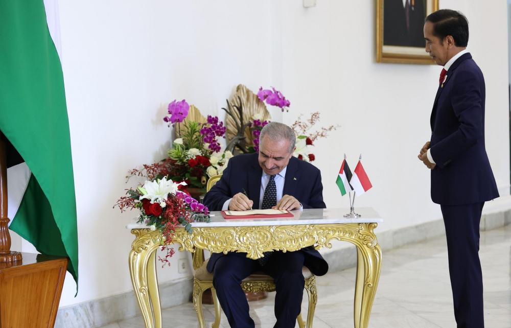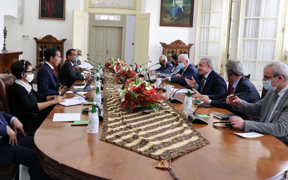 قال رئيس الوزراء محمد اشتية: "تواجه القضية الفلسطينية العديد من التحديات وانشغال العالم بقضايا أخرى، وهذا خلق فراغا سياسيا بحاجة الى ملء بجهد دولي، ونقدم لكم الشكر والتقدير على دعم اندونيسيا اللامتناهي وغير المحدود للقضية الفلسطينية، وللجهود الفلسطينية من أجل نيل العضوية الكاملة في الأمم المتحدة".