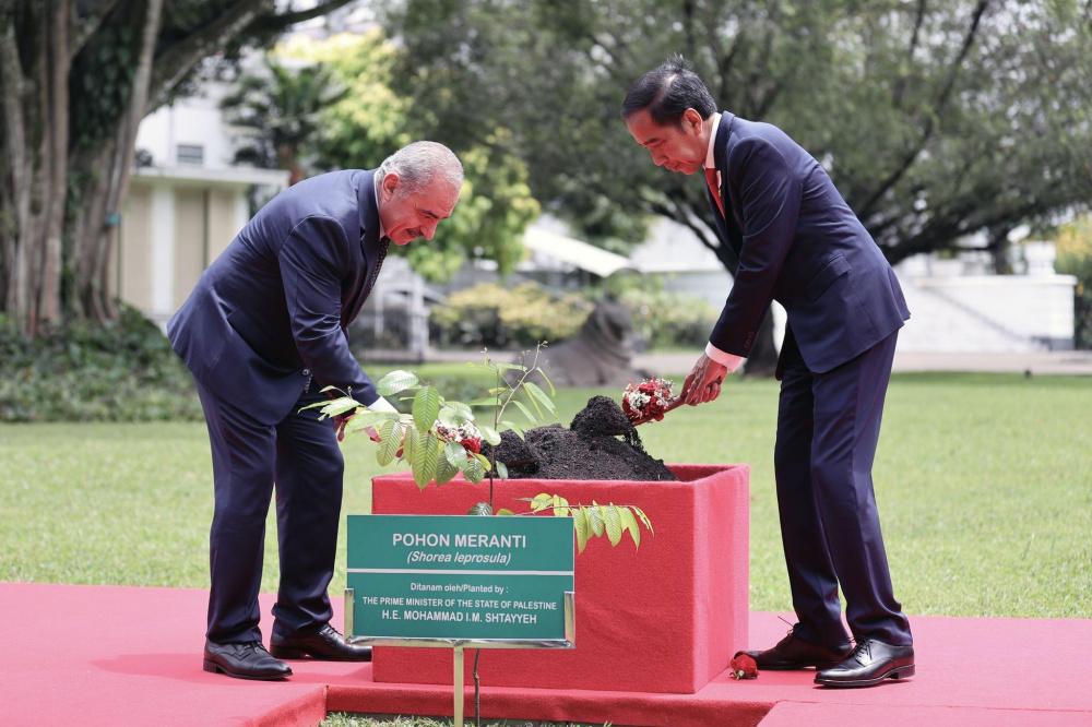 وقام اشتية عقب مراسم استقباله من قبل الرئيس الإندونيسي، في قصر بوجور الرئاسي، حيث عزف النشيد الوطني للبلدين، بزراعة شجرة في حديقة القصر إلى جانب الرئيس ويدودو، كتعبير عن الصداقة القوية بين البلدين.