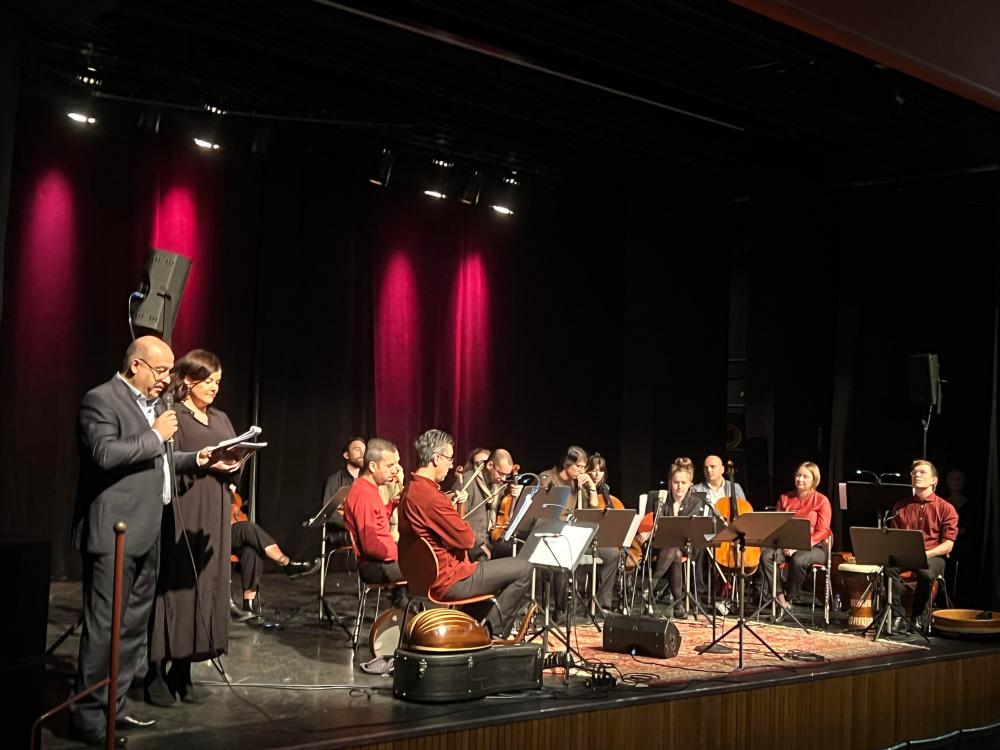 وعزفت اوركسترا "البوسفور" التي قادها الفنان الفلسطيني أحمد الخطيب وضمت نحو 20 عازفا من السويد وإسبانيا والتشيك وبولندا وسلوفينيا وفلسطين وإيران وسورية والعراق .