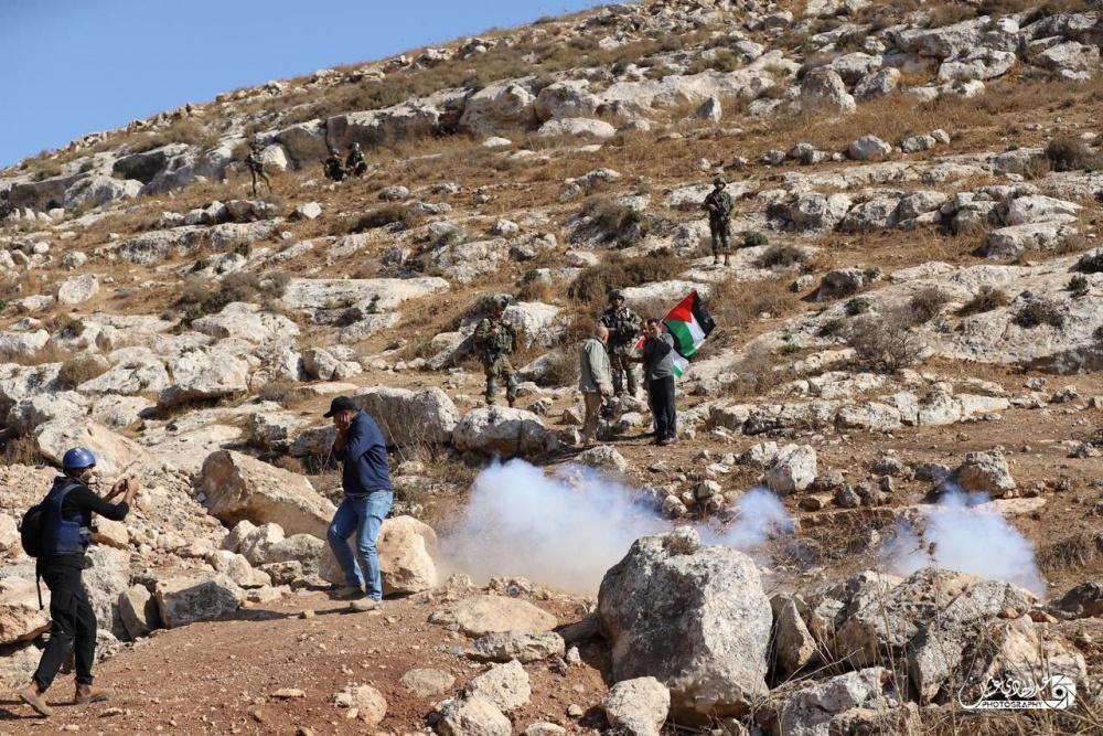 وفي قرية مادما بنابلس، اندلعت مواجهات بين المواطنين والمستوطنين واشتعلت النيران في أشجار الزيتون جراء إطلاق الاحتلال قنابل الغاز