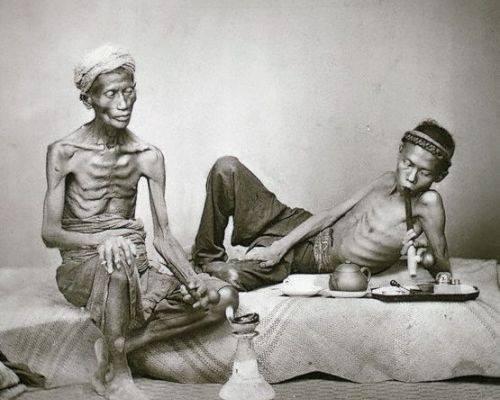 التقطت الصورة في جزيرة جاوة الاندونيسية عام 1906، حيث يظهر في الصورة أشخاص عبارة هياكل عظمية تدخن الافيون وهو مؤشر قوي على الإدمان.