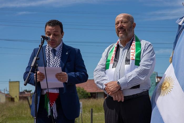 واستهل الحفل بالنشيدين الوطنيين الأرجنتيني والفلسطيني، تبعها كلمة لعمدة المدينة خورخي باريدي، عبر فيها عن فخره بأن يكون هذا الحدث خلال ولايته، وعن سعادته بتنظيم هذا الحفل لإطلاق اسم دولة فلسطين على أحد أهم شوارع المدينة والذي يمتد من شاطئ المدينة السياحي ليصل الى الطريق العام الذي يربط المدينة بالعاصمة بوينس آيرس.