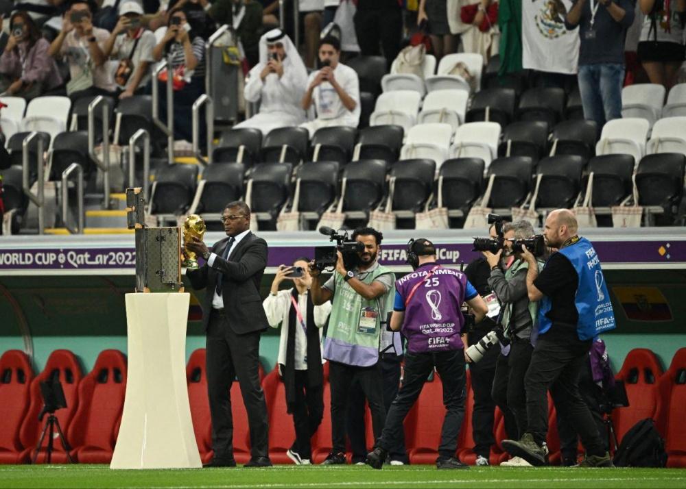 وقبل انطلاق حفل الافتتاح، رفع أسطورة منتخب فرنسا حامل لقب النسخة الماضية عام 2018، مارسيل ديساييه كأس العالم للجماهير قبل وضعه في مكانه المخصص بالملعب.