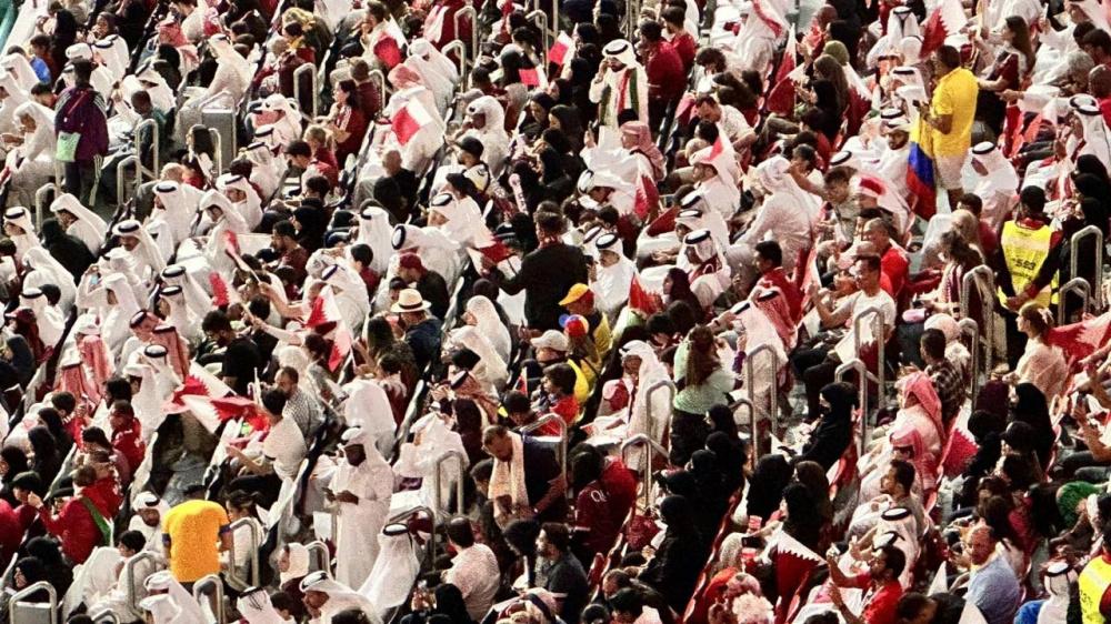 وكان رصد الجماهير القطرية سهلاً إذ أن الغالبية ترتدي الزي التقليدي الأبيض مع العقال، فيما كان اللون الأصفر عنوان الإكوادوريين.
