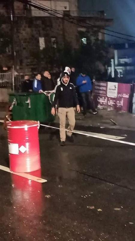 من مكان الانهيار وعمل طواقم البلدية لتأمين الشارع