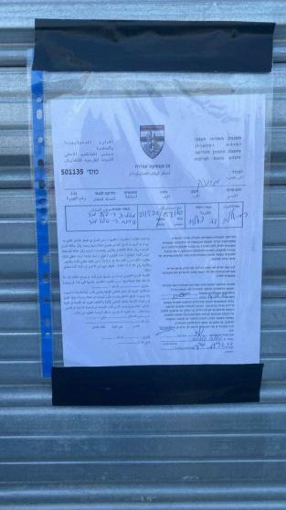 أخطرت سلطات الاحتلال الاسرائيلي، اليوم الإثنين، بوقف البناء في مخازن تجارية على مدخل بلدة بيت ريما، شمال غرب رام الله.