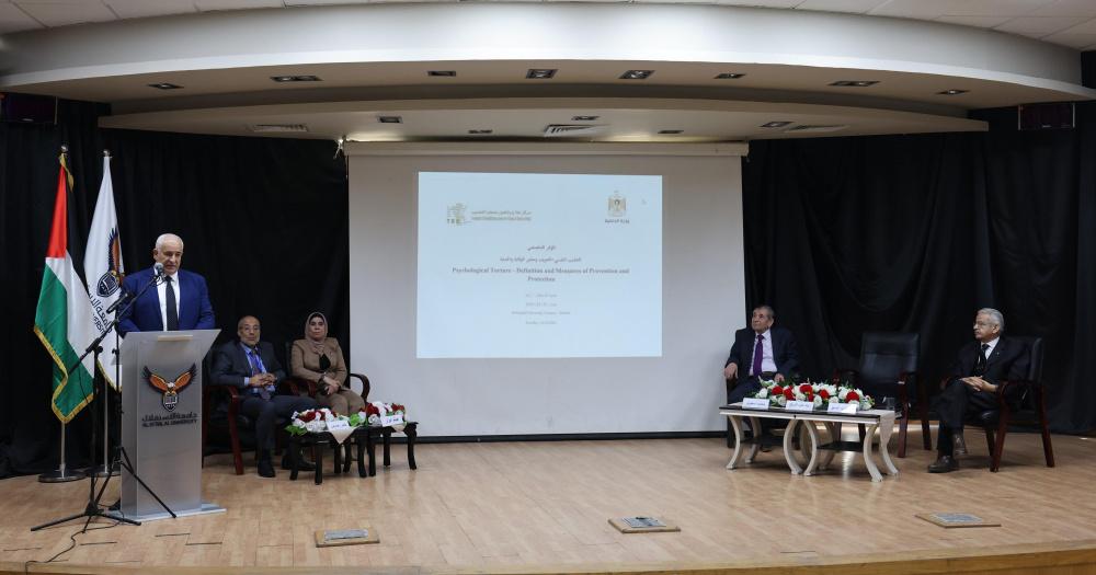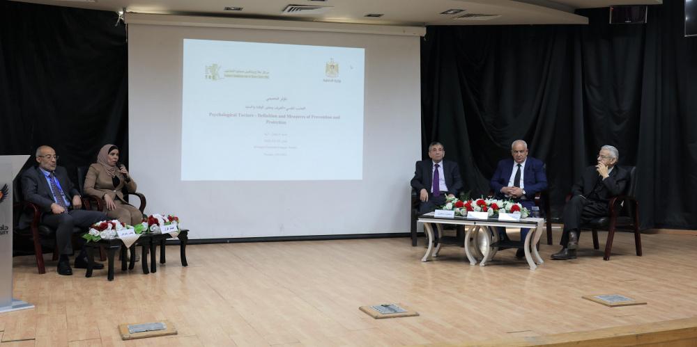 شارك وزير الداخلية اللواء زياد هب الريح، اليوم الثلاثاء، في المؤتمر التخصصي بعنوان (التعذيب النفسي، التعريف ومعايير الرقابة)، والذي ينعقد في جامعة الاستقلال برعاية وزارة الداخلية وبالشراكة مع مركز علاج وتأهيل ضحايا التعذيب، وذلك بحضور رئيس جامعة الاستقلال د. صالح أبو إصبع، ورئيس مجلس إدارة مركز وعلاج ضحايا التعذيب د. محمود سحويل، ورئيس وحدة حقوق الإنسان في وزارة الداخلية هيثم عرار.