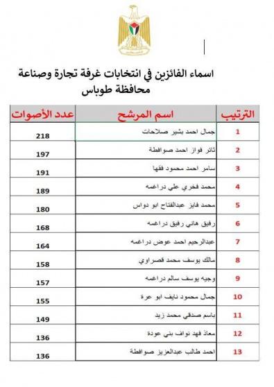 بالأسماء: نتائج انتخابات غرفة تجارة وصناعة محافظة طوباس