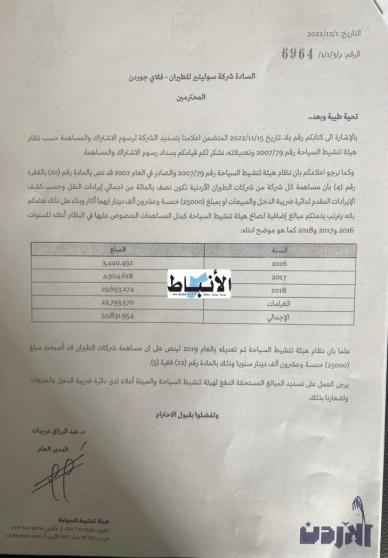 قال النائب السابق أمجد المسلماني أن هيئة تنشيط السياحة تطالبهم كـ شركة طيران بـ0.5% من إجمالي الإيرادات للشركة عن عام 2016 و2017 و2018 كونهم أعضاء لديها، مستنكراً مطالب الهيئة والتي تطالب بتلك الأموال لدفعها لشركات الطيران الأجنبية كما يقول.