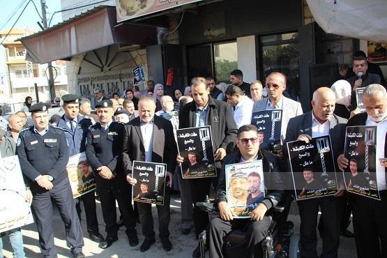 وفي طوباس شارك أهالي ومؤسسات المحافظة، في وقفة تنديد واستنكار لجريمة اغتيال الأسير ناصر أبو حميد، جراء سياسة الإهمال الطبي التي ارتكبتها إدارة السجون بحقه.