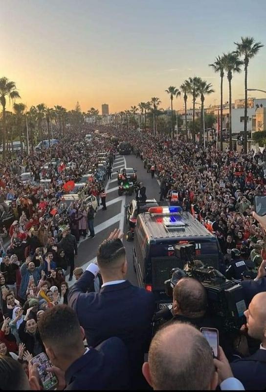 استقبل مئات الآلاف من المغاربة بالعاصمة الرباط، يوم الثلاثاء، منتخب بلادهم لكرة القدم قادما من قطر، بعد حصوله على المركز الرابع في بطولة كأس العالم.