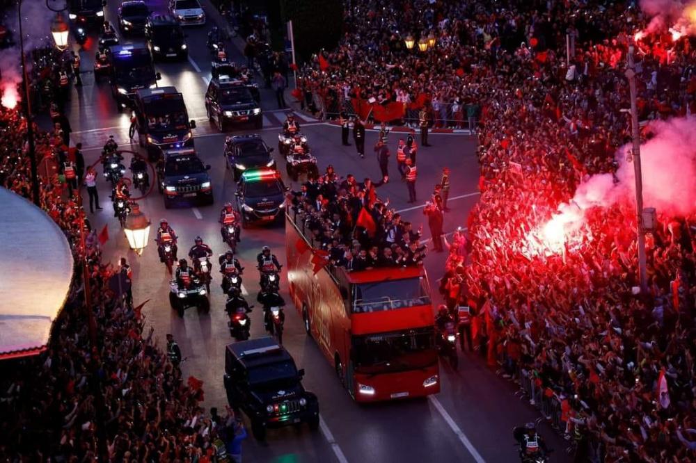وحمل اللاعبون العلم المغربي، وهم يهتفون لوطنهم، وحيّوا المواطنين على جنبات الشوارع.