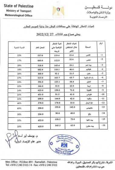تحذيرات الارصاد الجوية الفلسطينية: