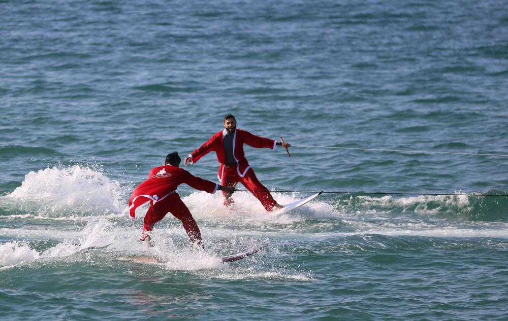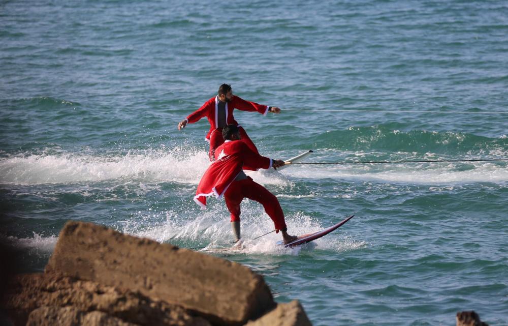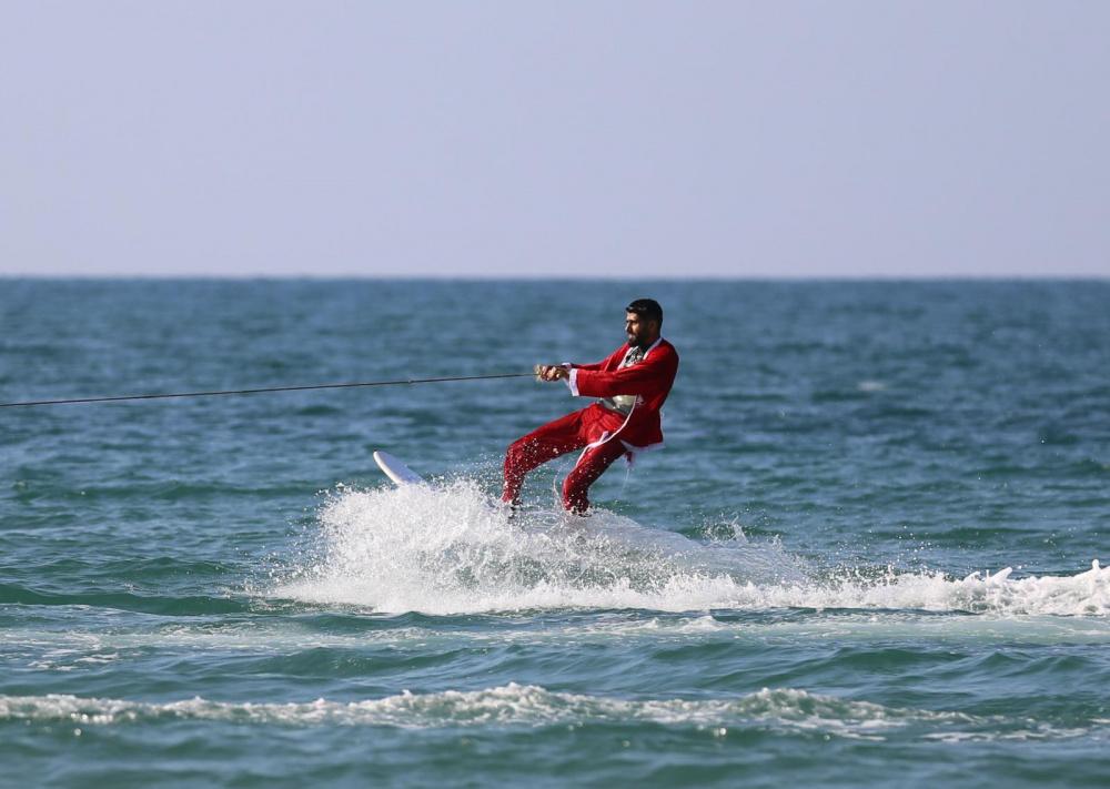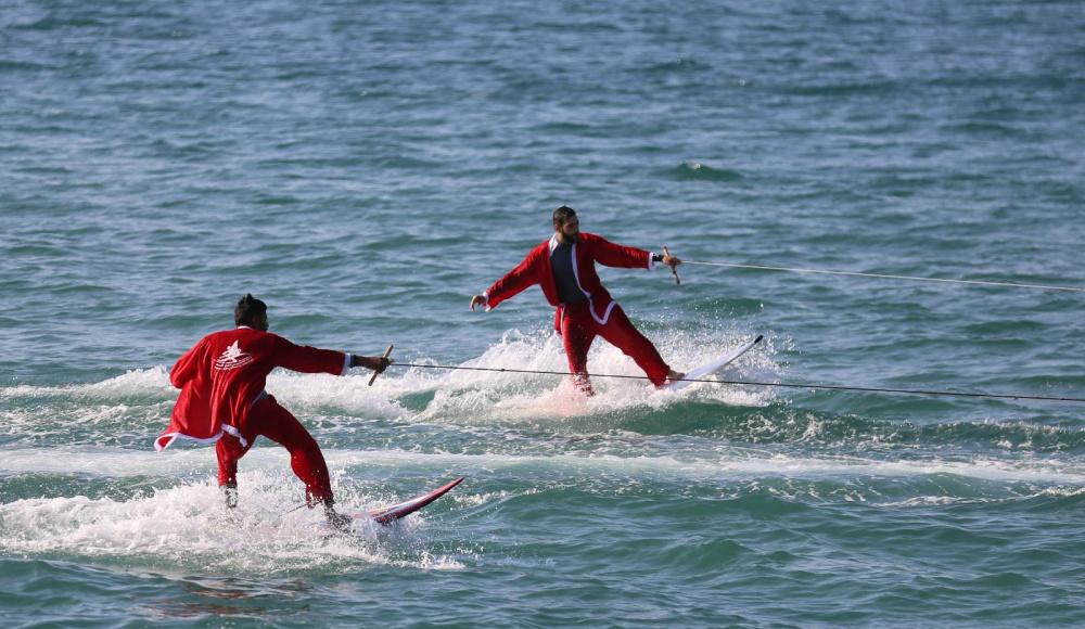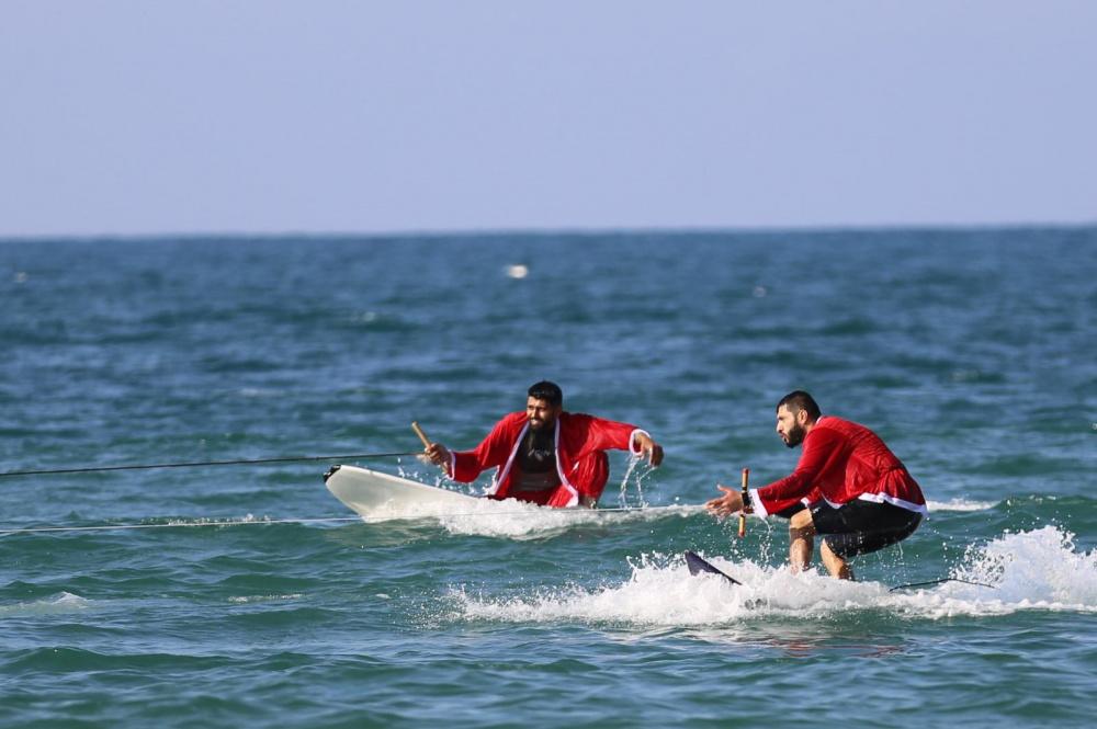 وخلال الفعاليّة، قام عدد من أعضاء فريق التزلّج التابع للاتحاد الفلسطيني للشراع والتجديف بارتداء زي "بابا نويل" والقيام بسلسلةٍ من الحركات الاستعراضيّة داخل البحر، وذلك من خلال سحبهم عبر قارب إلى داخل المياه إلى جانب العديد من الحركات الاستعراضيّة.