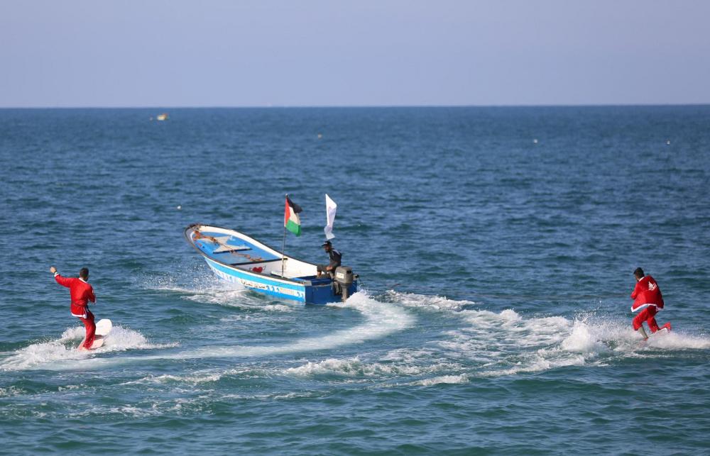 نظَّم الاتحاد الفلسطيني للشراع والتجديف في قطاع غزّة، ظهر اليوم الخميس 29 ديسمبر/ كانون أوّل، فعالية للتزلّج على شاطئ البحر غرب مدينة غزّة، وذلك بمُناسبة أعياد الميلاد المجيدة برعاية من بنك فلسطين