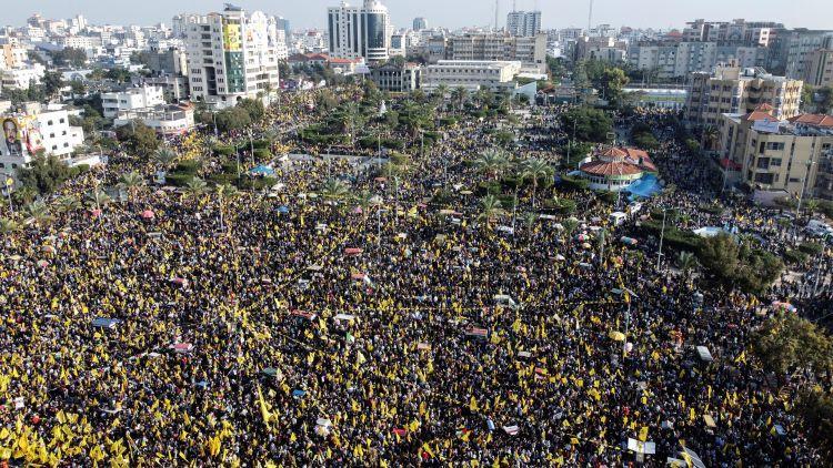 وحضر عشرات الآلاف من أنصار حركة "فتح" في المهرجان الذي رفعت خلاله رايات الحركة، والعديد من صور قادتها وشهدائها وأسراها، وذلك بحضور قيادات من الحركة بالضفة الغربية بينهم رئيس المجلس الوطني روحي فتوح، وعضو اللجنة المركزية صبري صيدم وغيرهم، إلى جانب قيادات الفصائل بغزة بينهم مسؤول ملف العلاقات الوطنية بحركة "حماس" زكريا أبو معمر.