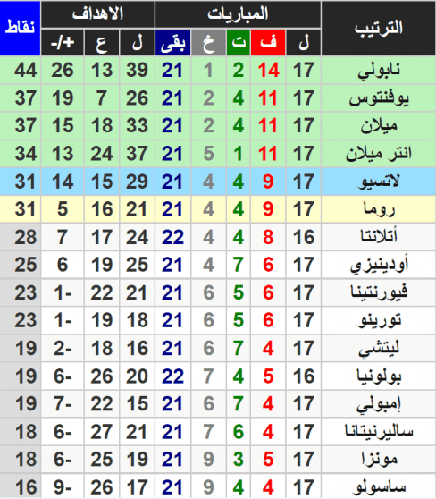 جدول ترتيب الدوري.. تعادل مثير بين ميلان وروما