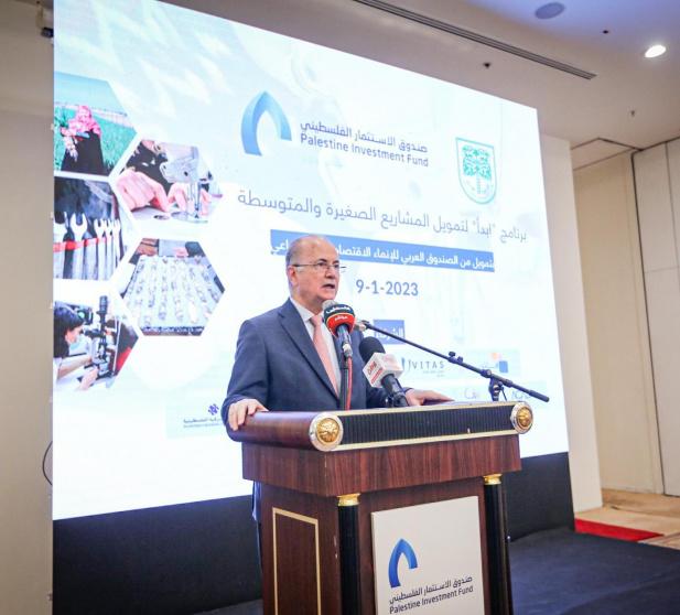وأضاف الدكتور مصطفى: "لقد أطلقنا هذا البرنامج انسجاماً مع رؤية القيادة الفلسطينية ممثلة بفخامة الرئيس محمود عباس، والهادفة إلى تحسين المؤشرات الاقتصادية، ليلمسها المواطن في حياته اليومية من خلال توفير فرص العمل، وتطوير المشاريع الصغيرة، وتحسين المستوى المعيشي. ويبلغ حجم المحفظة التمويلية لهذا البرنامج 40 مليون دولار، حيث قدّم برنامج الحساب الخاص التابع للصندوق العربي للإنماء الاقتصادي والاجتماعي قرضاً بقيمة 30 مليون دولار، نتج عنه إقراض 40 مليون نتيجة إعادة تدوير المبالغ المسددة".