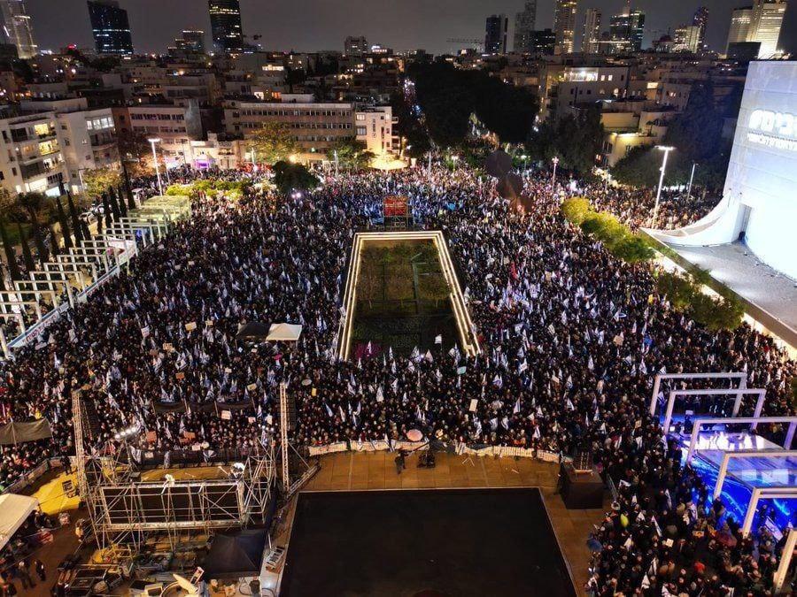 تظاهر آلاف الإسرائيليين، مساء السبت، في عدة مدن، احتجاجًا على حكومة اليمين المتطرف التي يترأسها بنيامين نتنياهو، وسياساتها خاصة فيما يتعلق بما يسمى "الإصلاحات القضائية".