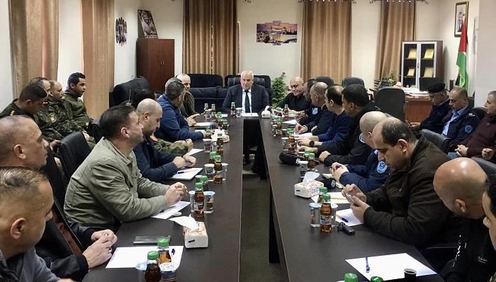 وفي سياق متصل، ترأس وزير الداخلية بحضور الرجوب، اجتماعا لقادة وممثلي الأجهزة الأمنية في المحافظة في مقر قيادة الأمن الوطني، بحضور قائد منطقة جنين العميد ركن محمد الأعرج.