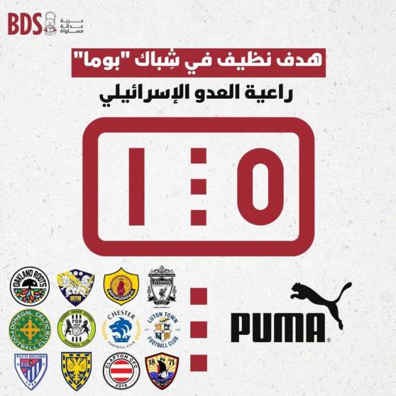 وأوردت "BDS" في منشور لها: "بعض الأندية التي سجلت هدفا نظيفا في شباك ‘بوما‘ راعية الاضطهاد والظلم، بإلغائها أو تعهدها عدم تجديد عقودها مع الشركة: نادي قطر، فريق كرة القدم التابع لأكبر جامعة ماليزية، نادي تشستر، نادي لوتن، نادي فوريست غرين، نادي ليفربول، نادي مينيلمونتانت، نادي ويمبلدون، نادي كلابتون كوميونيتي، رابطة مشجعي نادي بالميراس، نادي باكو ريجور، نادي دونيجال سيلتيك".