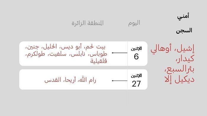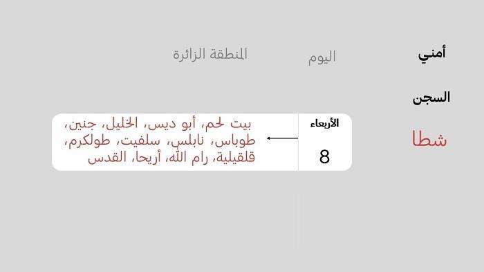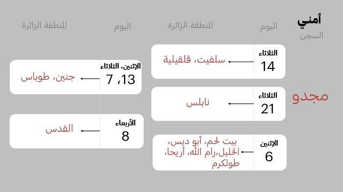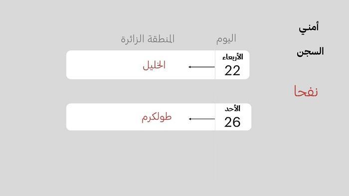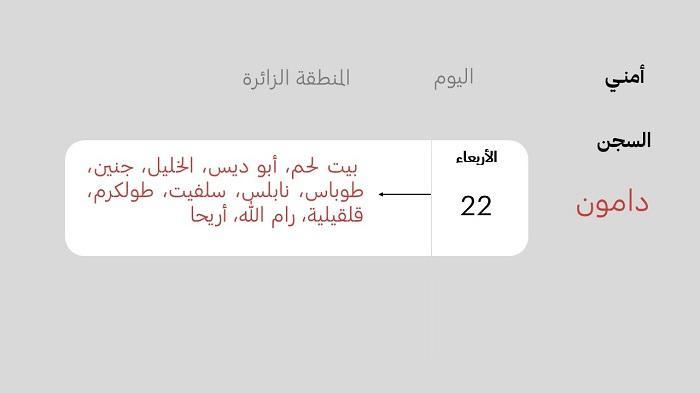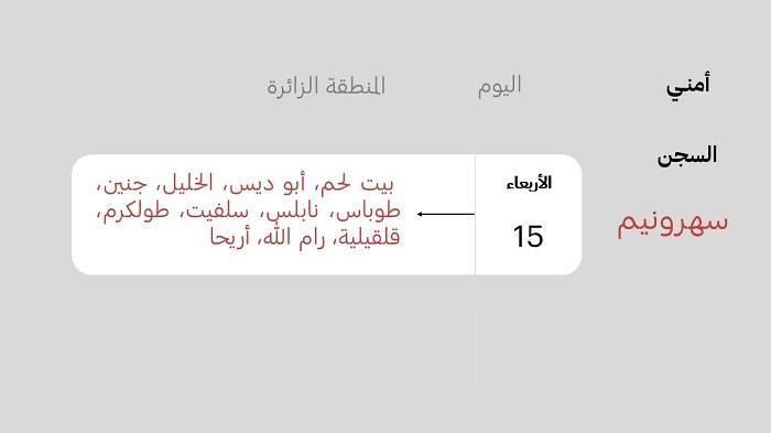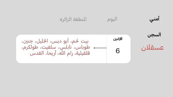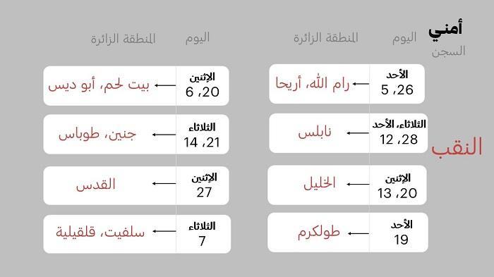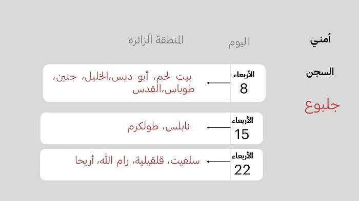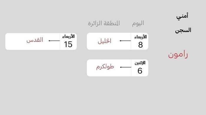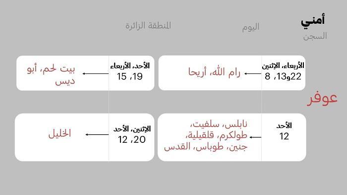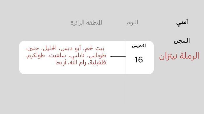 وأوضحت اللجنة، في بيان لها، أنه تم تغيير تاريخ بعض الزيارات لبعض السجون خلال شهر شباط المقبل، وأنه يجب التسجيل في التاريخ المحدد للزيارة قبل انتهاء موعد التسجيل (أسبوع قبل تاريخ الزيارة)، آملة الاستئناف الكامل لبرنامج الزيارات العائلية.