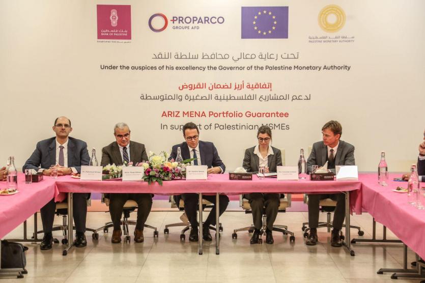وقع بنك فلسطين ومؤسسة بروباركو (Proparco)الذراع الاستثماري للوكالة الفرنسية للتنمية "AFD ، وبتمويل من الاتحاد الأوروبي، اتفاقية تجديد لدعم وتمويل المشاريع الصغيرة والمتوسطة، من خلال محفظة ARIZ MENA، بقيمة 9.2 مليون دولار أمريكي.