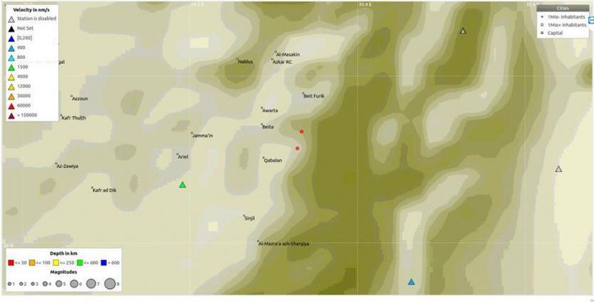وقد تعرضت مدنية نابلس خلال الشهر الجاري إلى ثلاث هزات على مدار يومين، الأولى كانت بتاريخ 7-2 في حدود الساعة 23:14 مساء، وكانت بقوة 3.7 درجات على مقياس ريختر وعلى عمق 10 كم في باطن الأرض على خط عرض 32.15 شمالا وخط طول 35.32 شرقا".