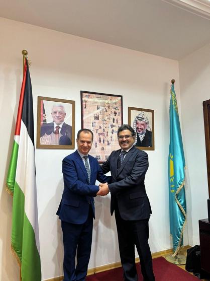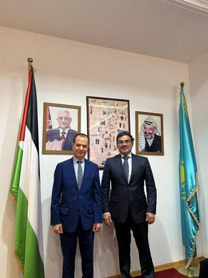 ناقش السفير الفلسطيني-عميد السلك الدبلوماسي العام في كازاخستان، د. منتصر أبو زيد، مع نظيره السعودي فيصل بن حنيف القحطاني، أهمية العمل العربي المشترك في اطار مجلس السفراء العرب في كازاخستان.