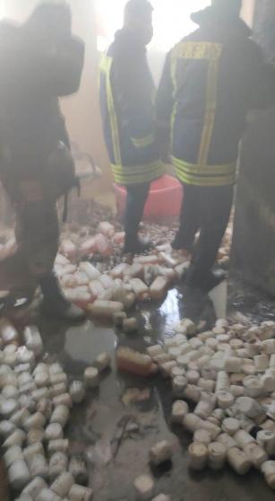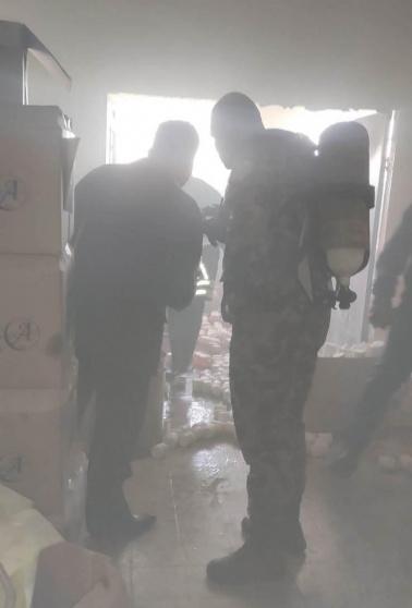 هذا وعملت طواقم الدفاع المدني على إخماد النيران والحريق داخل المعمل وحصرها في موقعها إضافة لتفقد المعمل وتهويته.