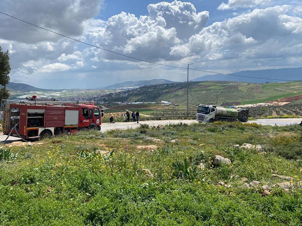 انقلاب صهريج وقود في طوباس وتسرب كمية كبيرة من الوقود