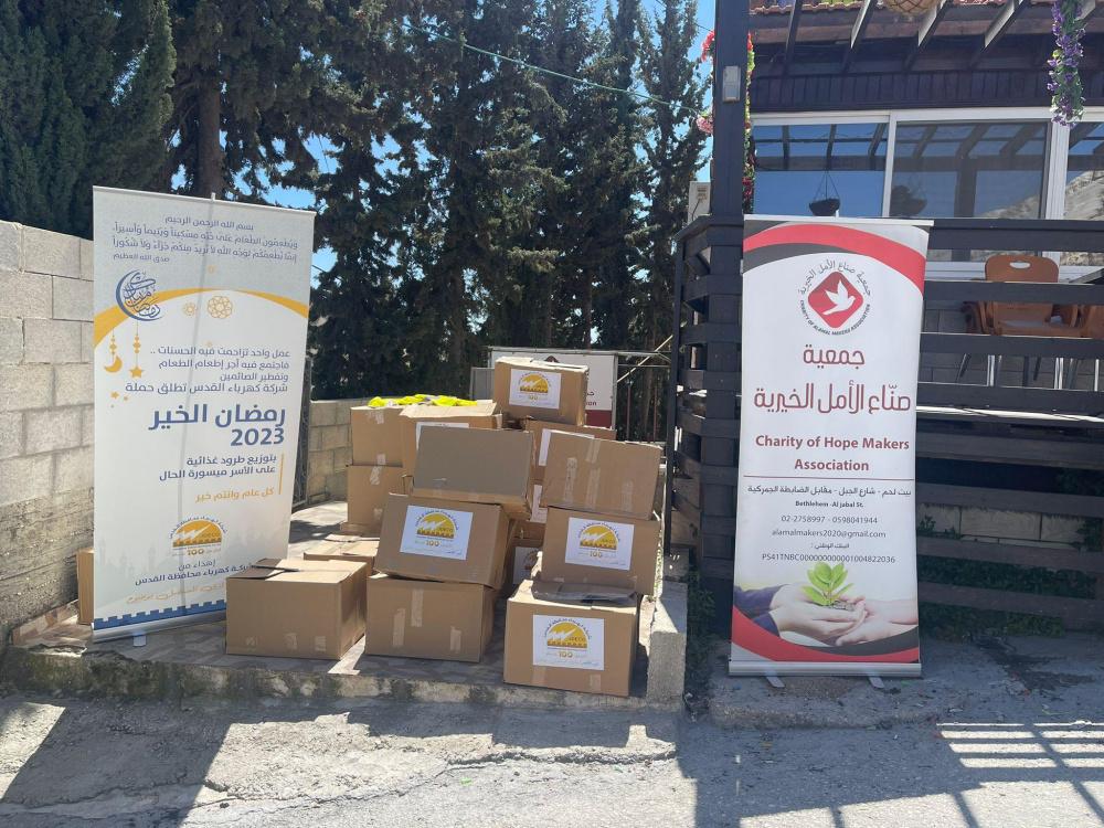 أطلقت شركة كهرباء محافظة القدس حملة رمضان الخير 2023 من خلال تسليم الدفعة الاولى من الطرود الغذائية لجمعية صناع الأمل الخيرية في محافظة بيت لحم بحضور مدير العلاقات العامة الخارجية والبروتوكول السيد فراس جبران في شركة كهرباء محافظة القدس ومدير جمعية صناع الامل السيد عماد ابو نصار وأعضاء مجلس ادارة الجمعية.